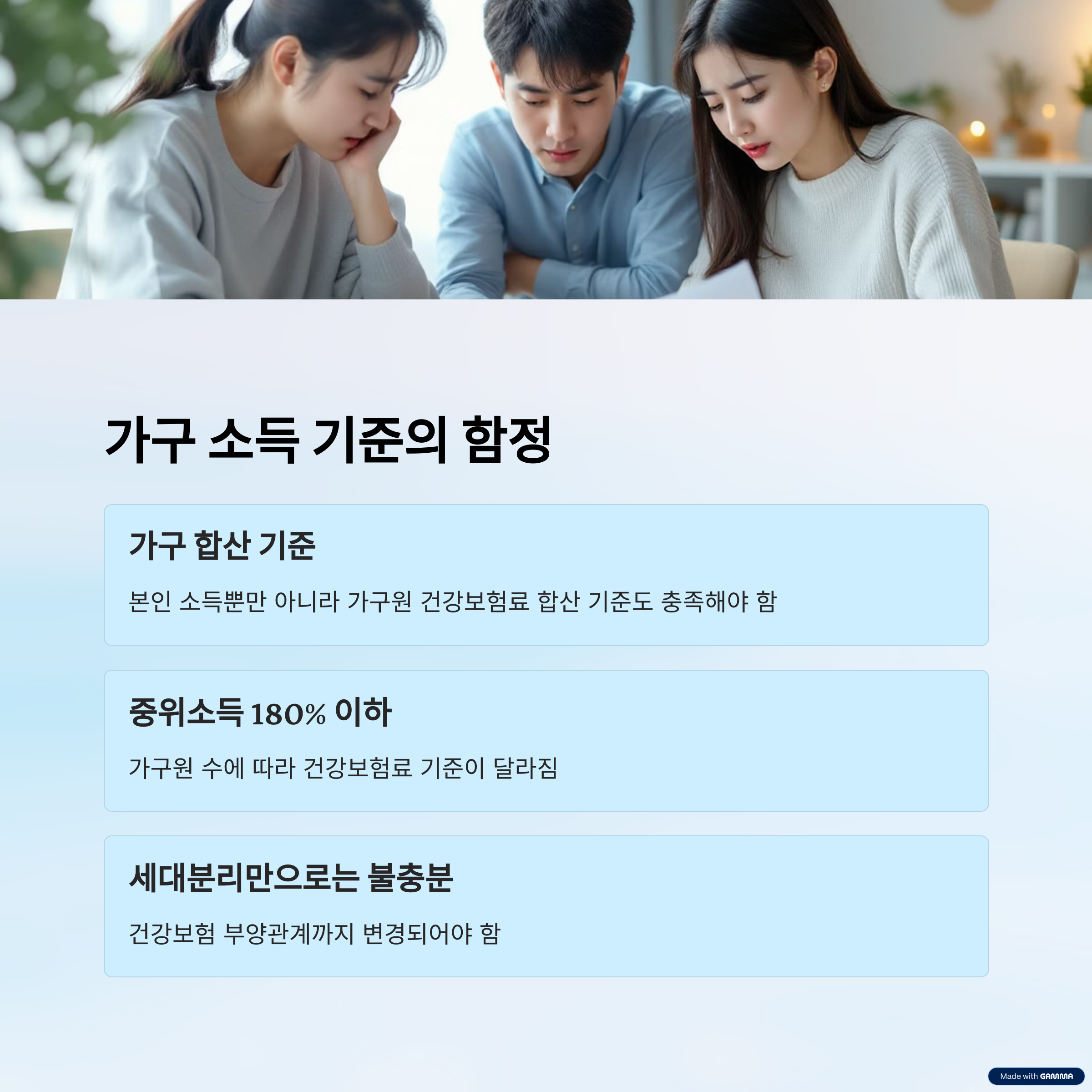 간혹 '세대분리'만 하면 해결될 거라 생각하는 분들이 있어요. 하지만 단순한 주소 분리가 아니라, 건강보험의 실제 부양관계 변경까지 완료돼야 기준이 적용돼요. 이 점 꼭 기억해두셔야 해요!