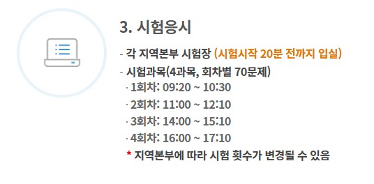 🚨 접수 완료 후에는 교육과 시험 시간을 꼭 확인하세요! 일부 지역은 오전 교육, 오후 시험으로 나뉘거나 반대로 운영되기도 해요.