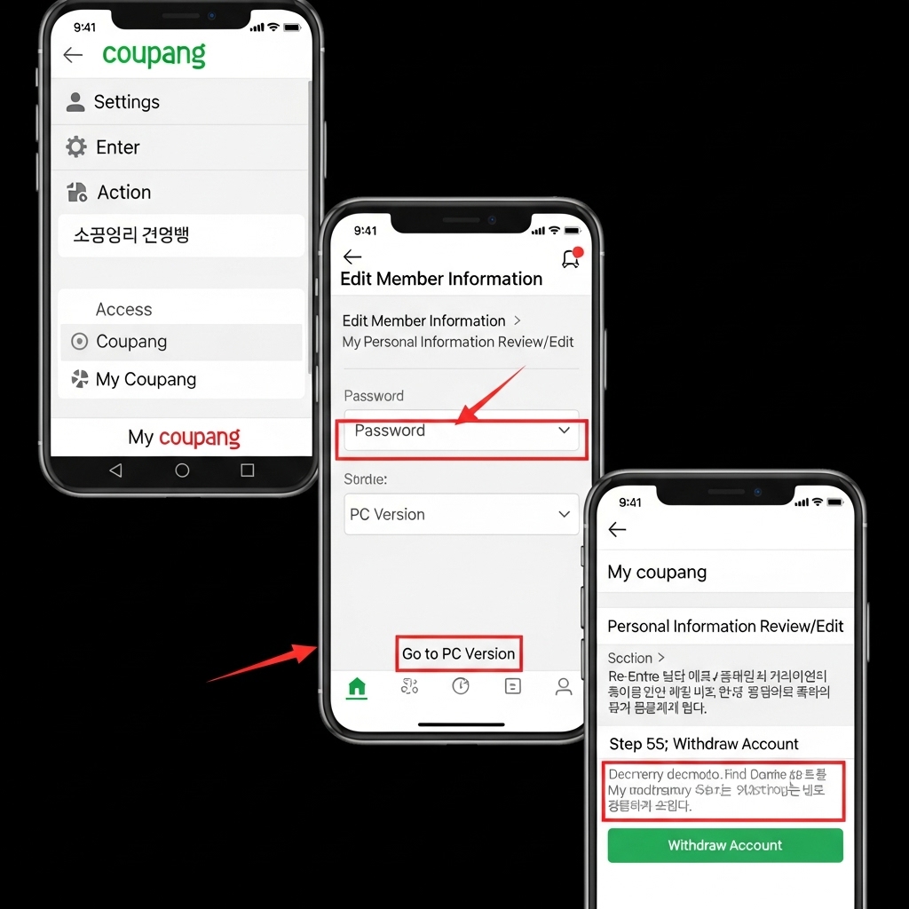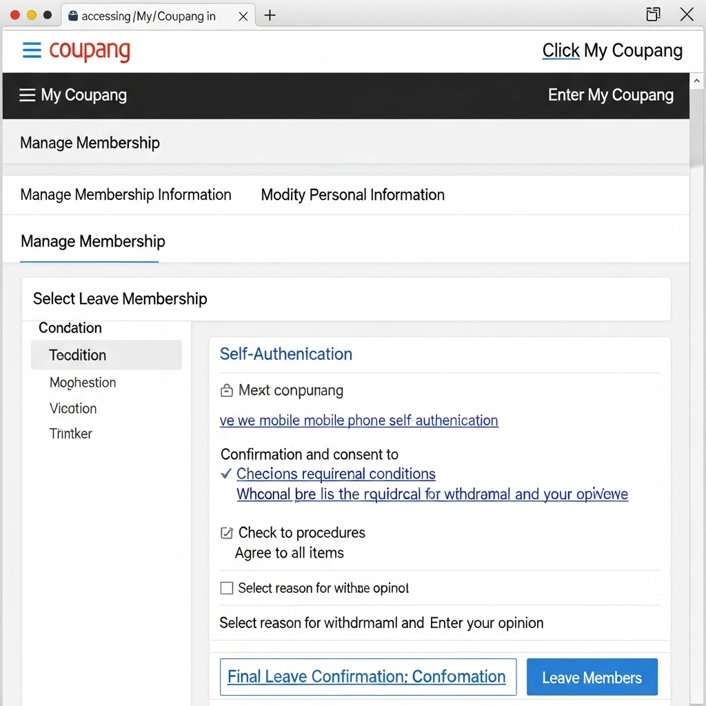이제 본격적으로 쿠팡 회원 탈퇴 절차를 단계별로 알아보겠습니다. 쿠팡은 모바일 앱과 PC 웹에서 탈퇴 경로가 약간 다르지만, 기본적으로 '마이쿠팡' 또는 '내 정보 관리' 메뉴를 통해 접근할 수 있습니다.