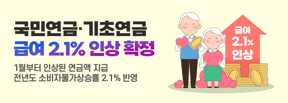 A2. 네, 국민연금 수급자도 동일하게 2.1% 인상 적용돼요.